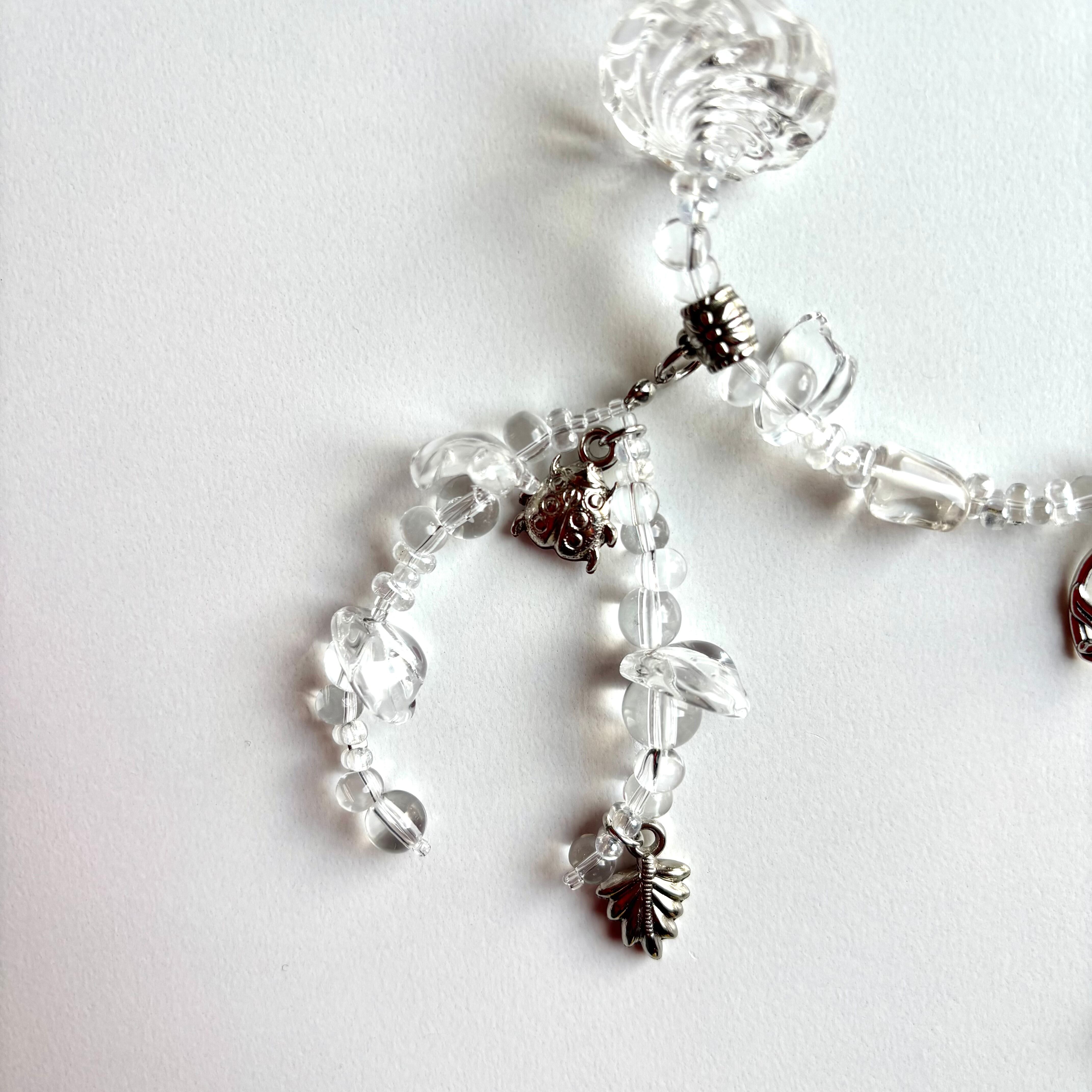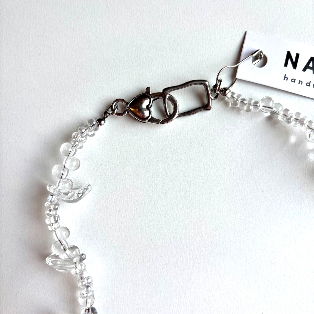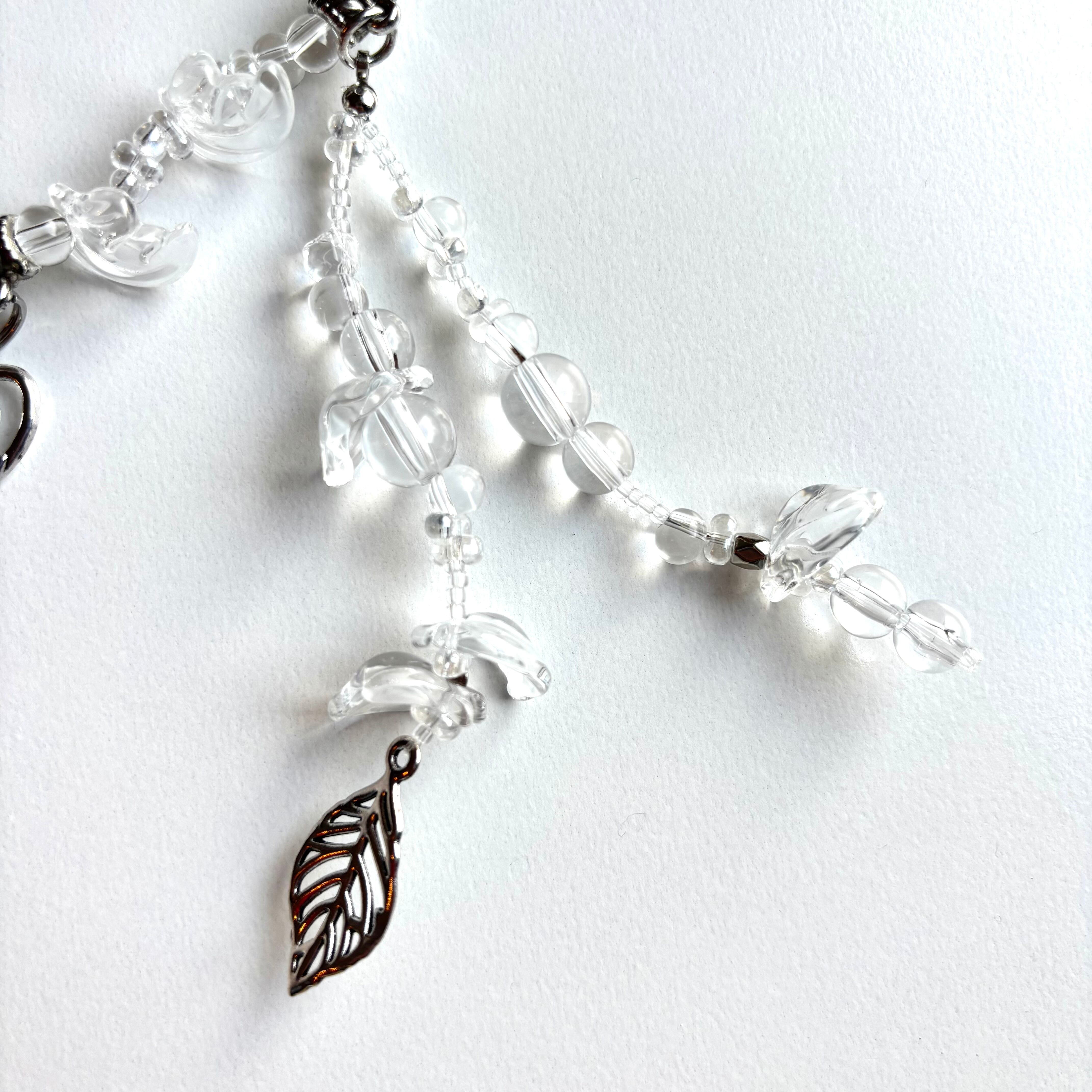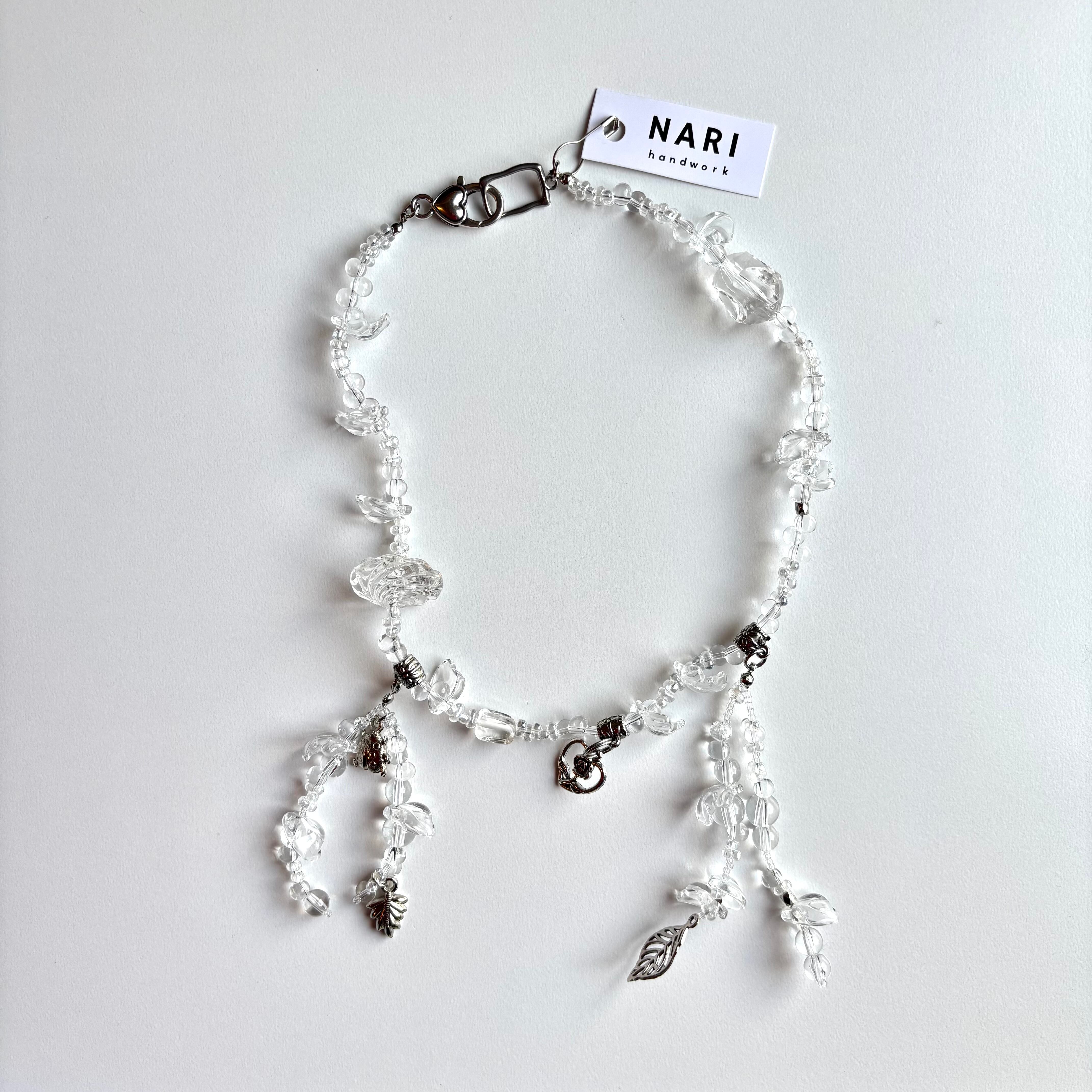 クリアビーズとシルバーのパールのみでできた主役級のネックレスです。