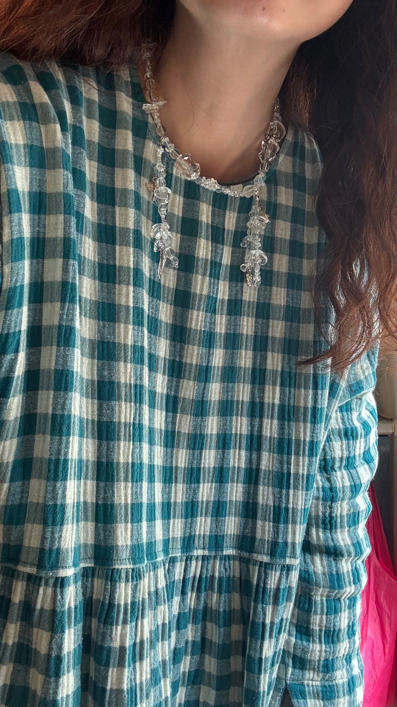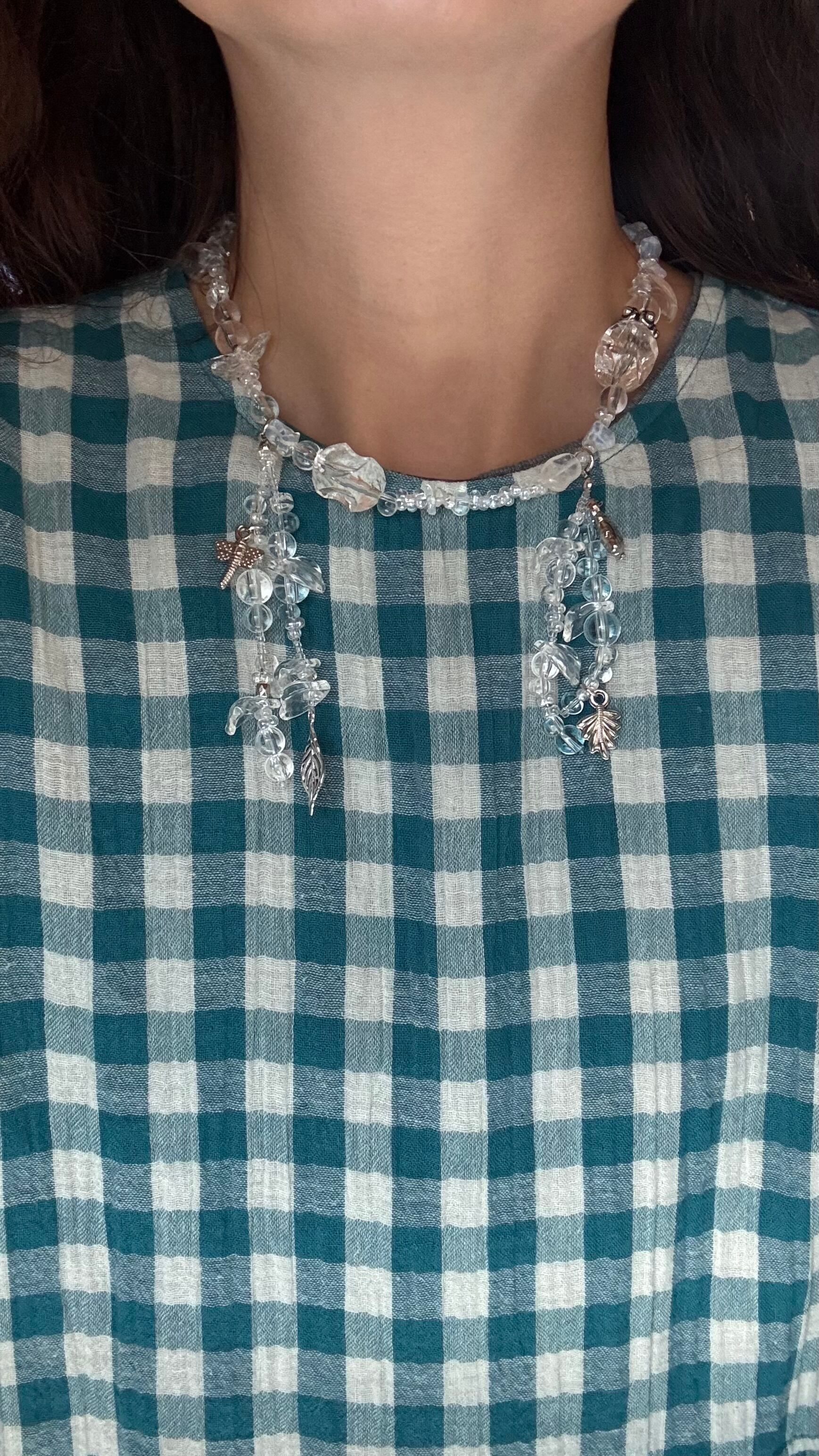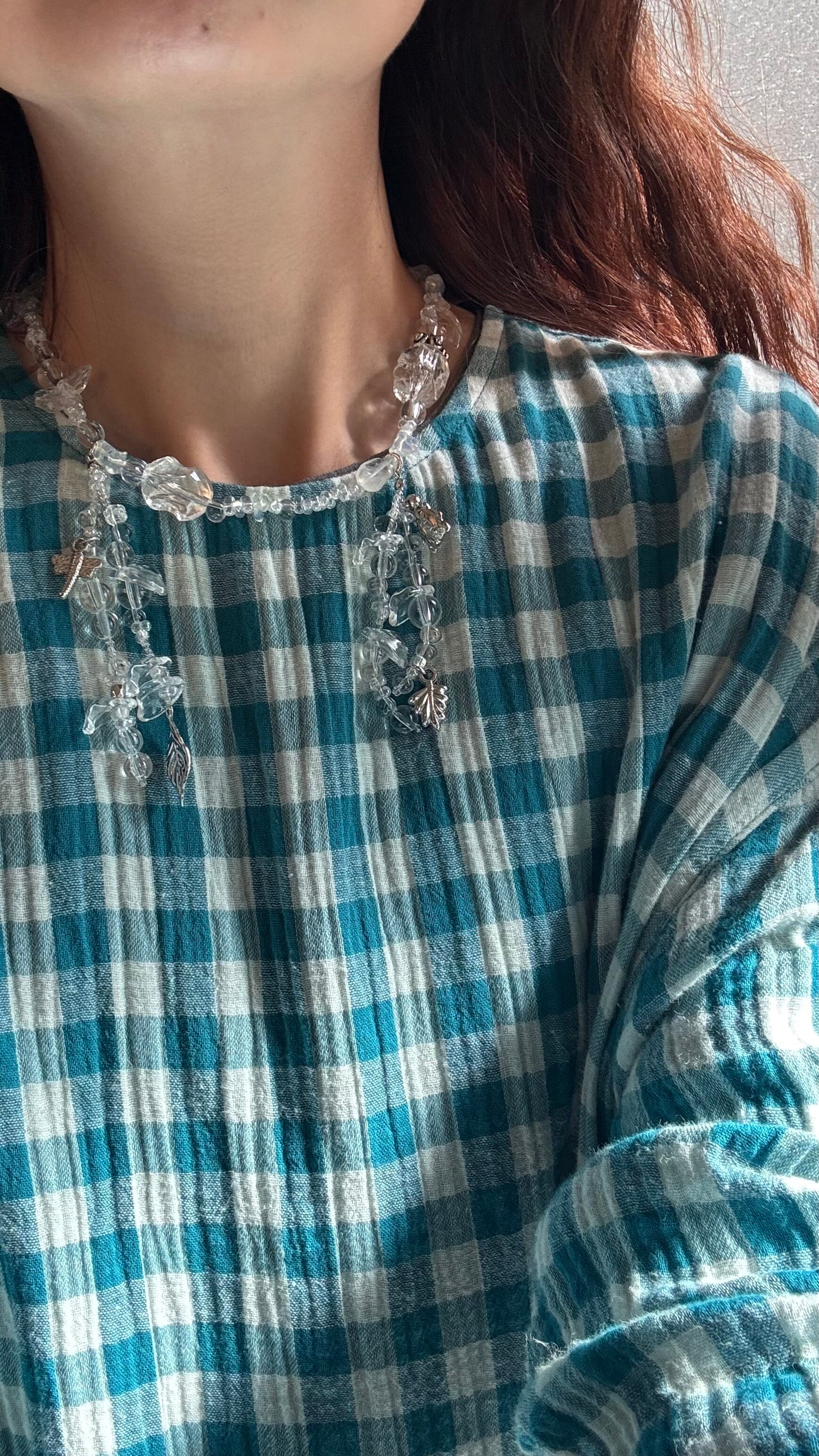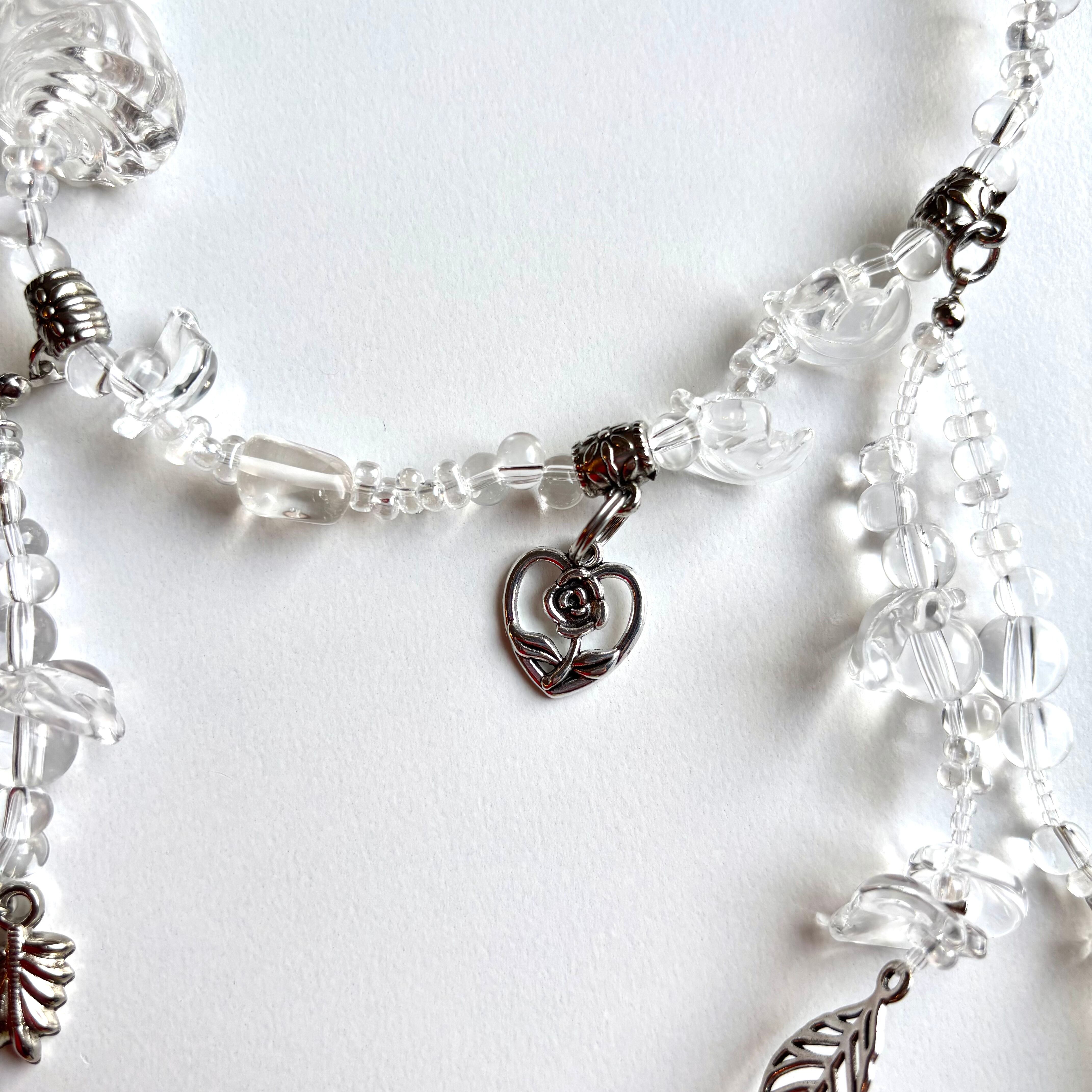 クリアビーズとシルバーのパールのみでできた主役級のネックレスです。