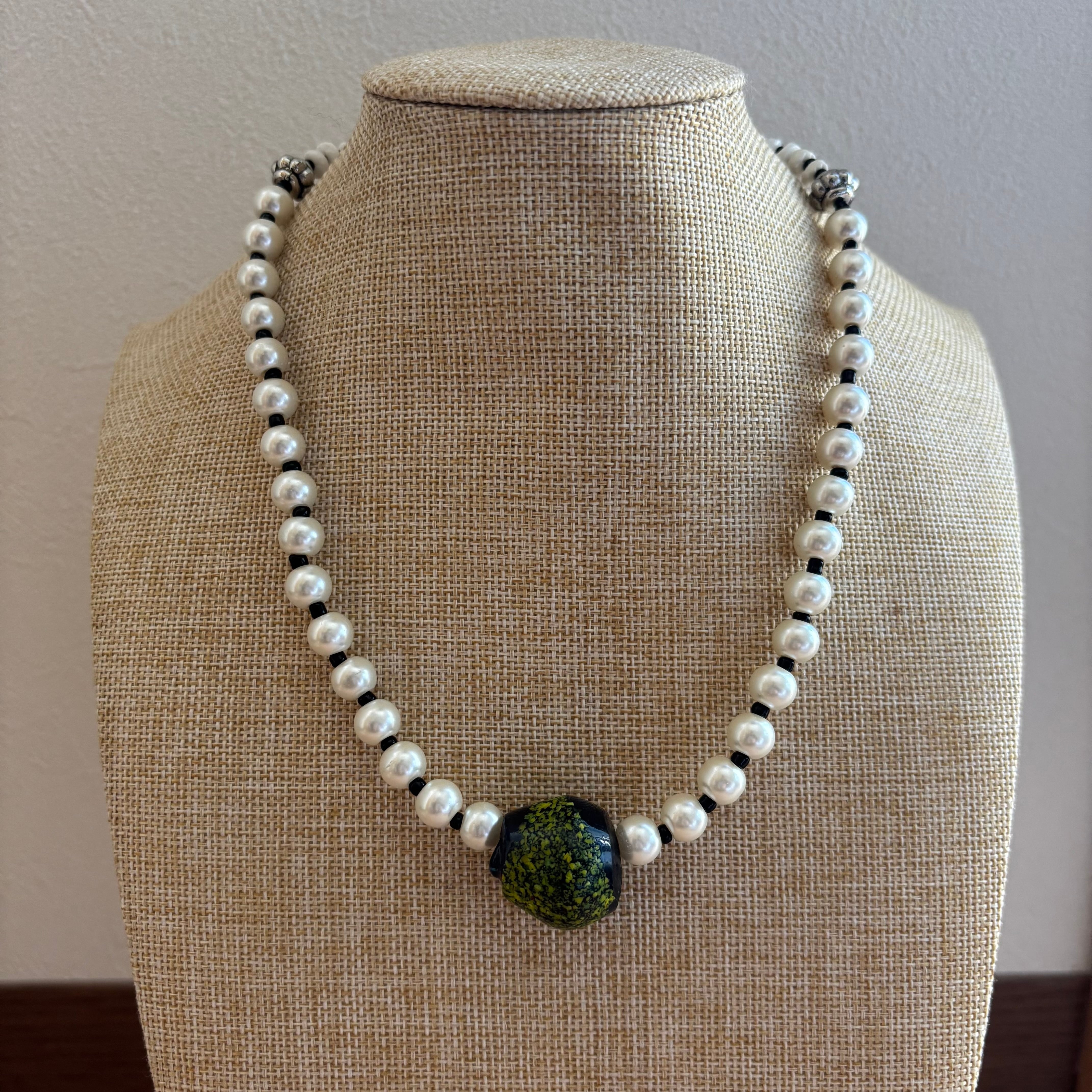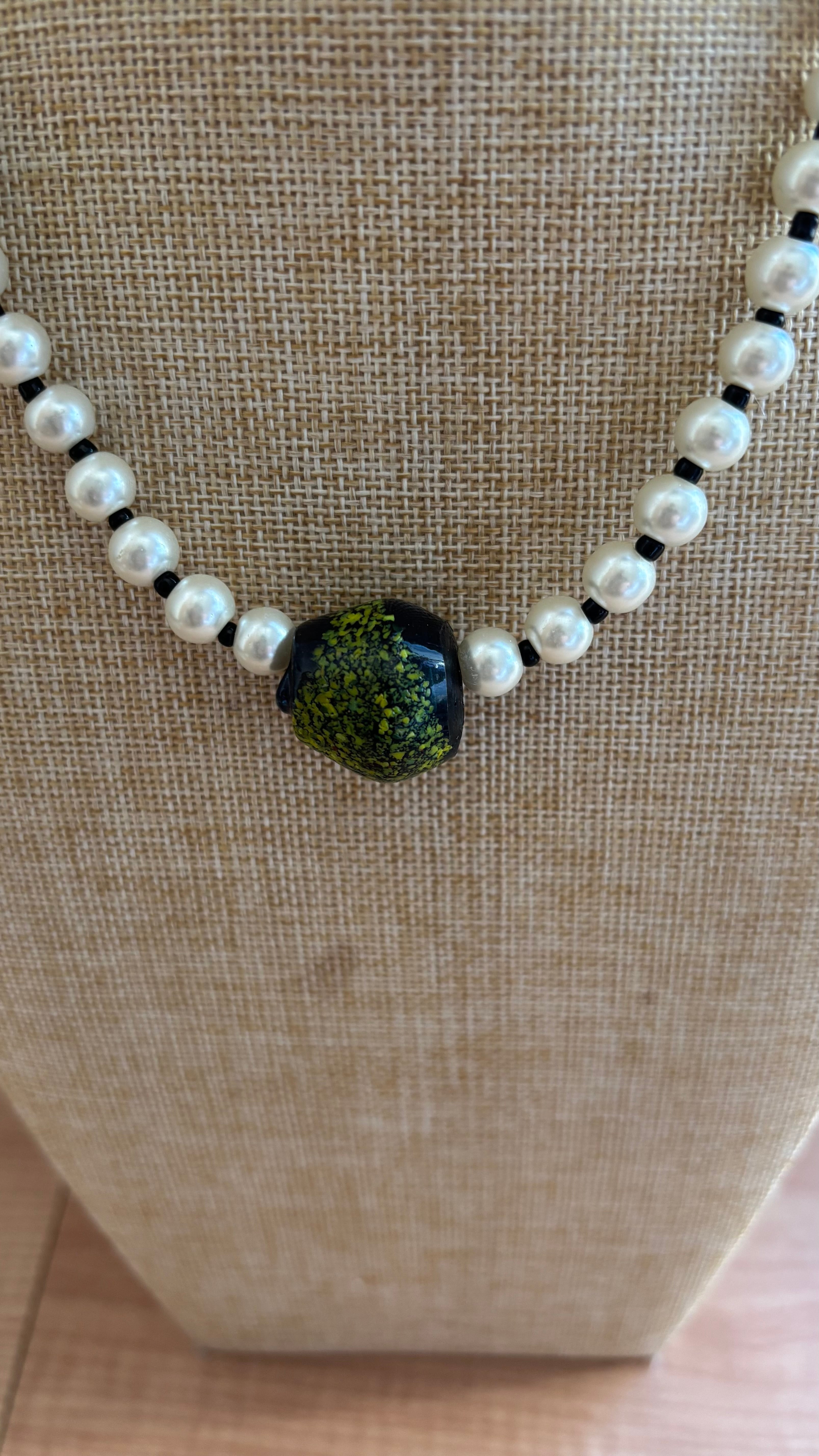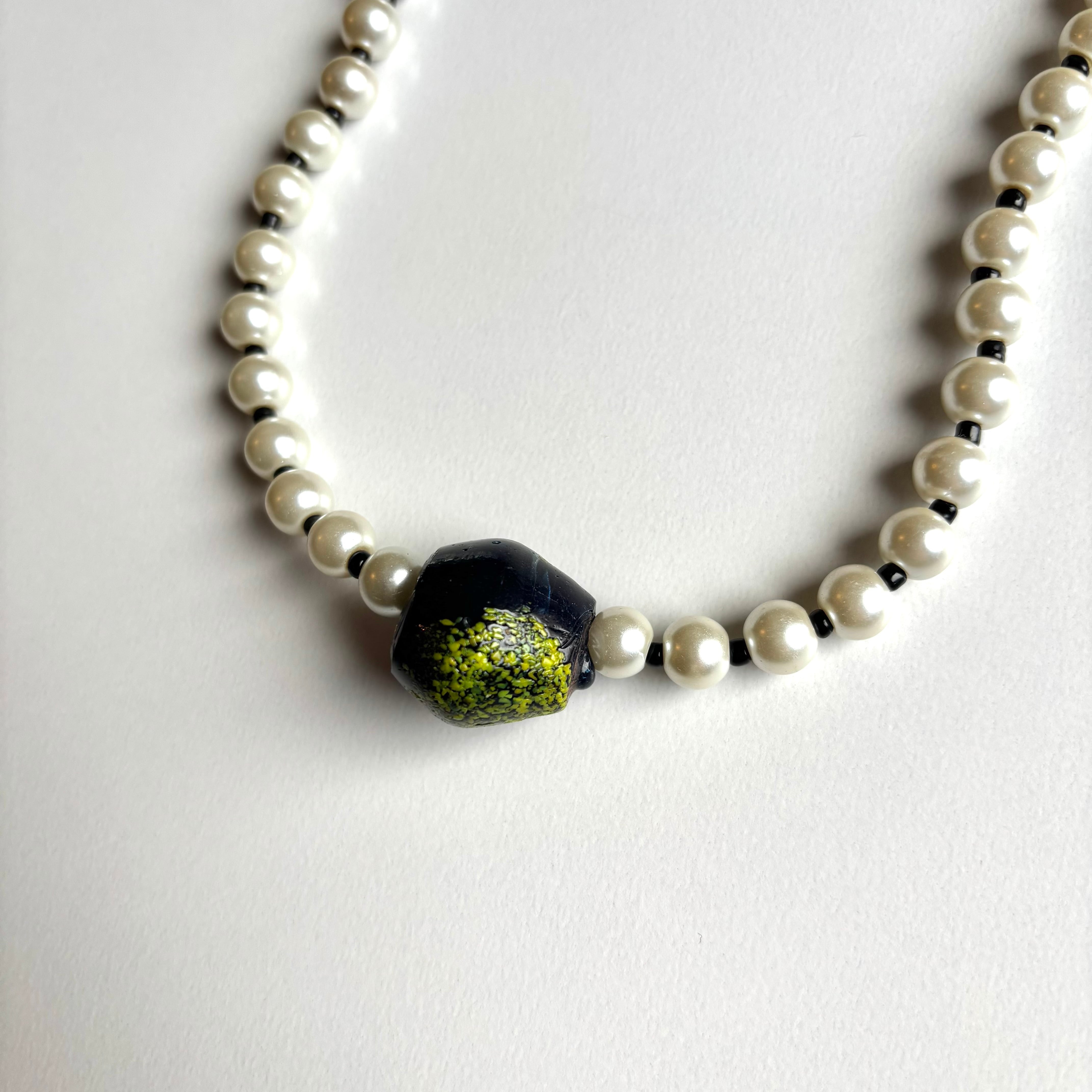 ポイントにアフリカ製のハンドメイドガラスビーズを使ったネックレスです。